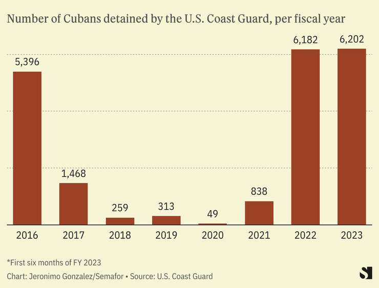 The U.S. Coast Guard detained 6,202 Cuban migrants in the six months to March, higher than the total yearly amount for at least the past seven years.