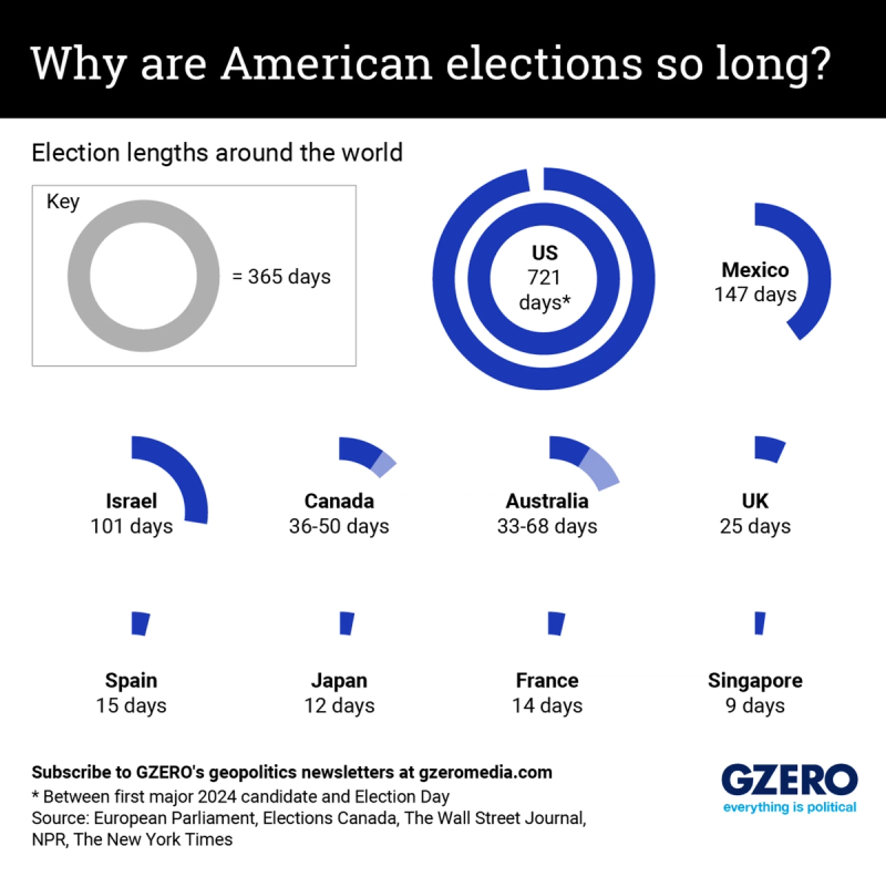 - Ground Zero notes that other nations’ election periods range from 147 days in Mexico to 9 days in Singapore (where the outcome is less...in doubt.)
