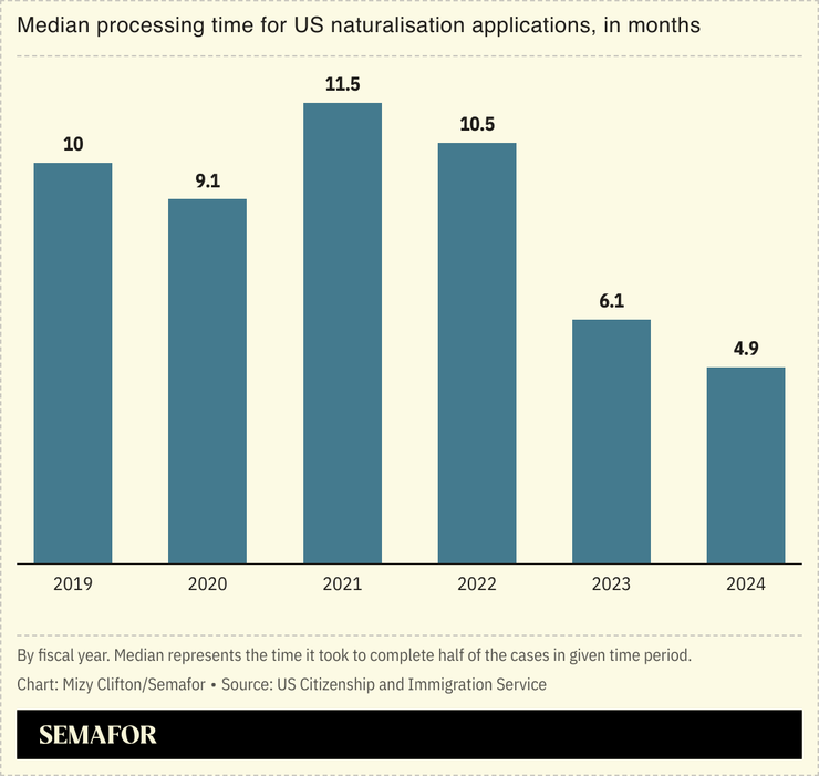 Immigrants to the US are becoming American citizens at the fastest pace in about a decade, with applications now processed in less than 5 months on average.