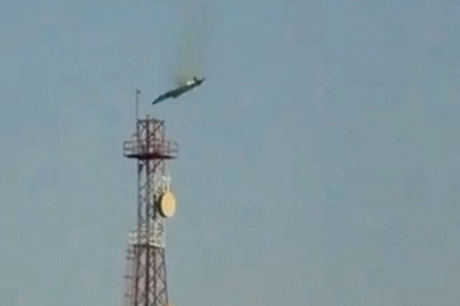 A burning aircraft falls from the sky in Kuwait. Social media via Reuters.