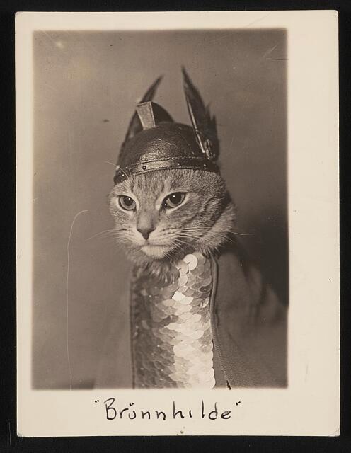 Washington’s Library of Congress announced that a new photograph of a cat dressed as the German heroine Brünnhilde, from Richard Wagner’s opera Der Ring des Niebelungen, has been made public and free to download.