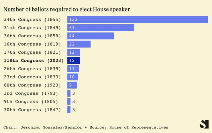 The U.S. House of Representatives is on track to attempt to elect a speaker for the 12th time — surpassing the amount of time it took in 1923, when a House leader was elected on the ninth ballot.