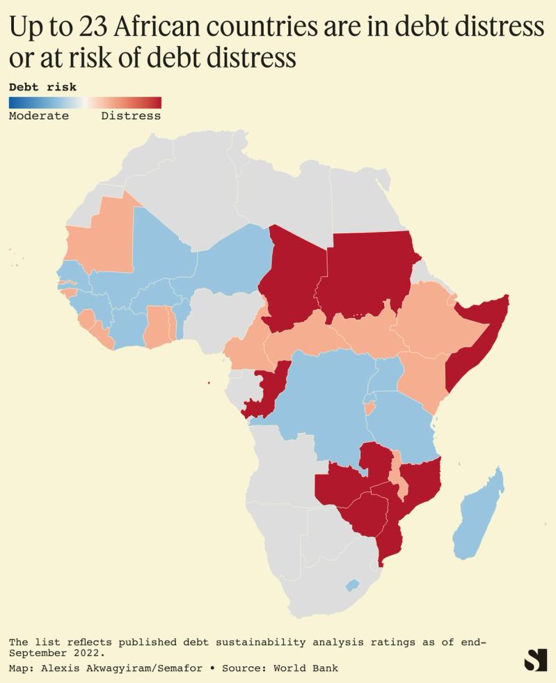 Nearly half of Africa’s countries face difficulties making their debt repayments, according to figures compiled by the World Bank and International Monetary Fund. Eight countries are in debt distress — meaning they are unable to fulfill their financial obligations — and 15 others are at high risk of falling into that category. As countries struggle, their creditworthiness plummets and they find it difficult to borrow from global markets.