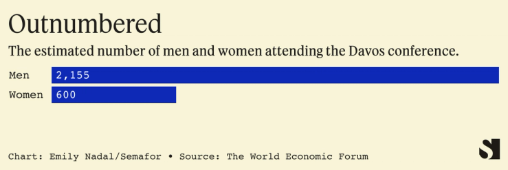 Power women: Davos still has the demographics of an oil rig (see above) but a generation of women have emerged as the gathering’s most effective operators. They include the EC’s Ursula von der Leyen, World Trade Organization President Ngozi Okonjo-Iweala, European Central Bank President Christine Lagarde, IMF Managing Director Kristalina Georgieva, and Canadian Deputy Prime Minister Chrystia Freeland.