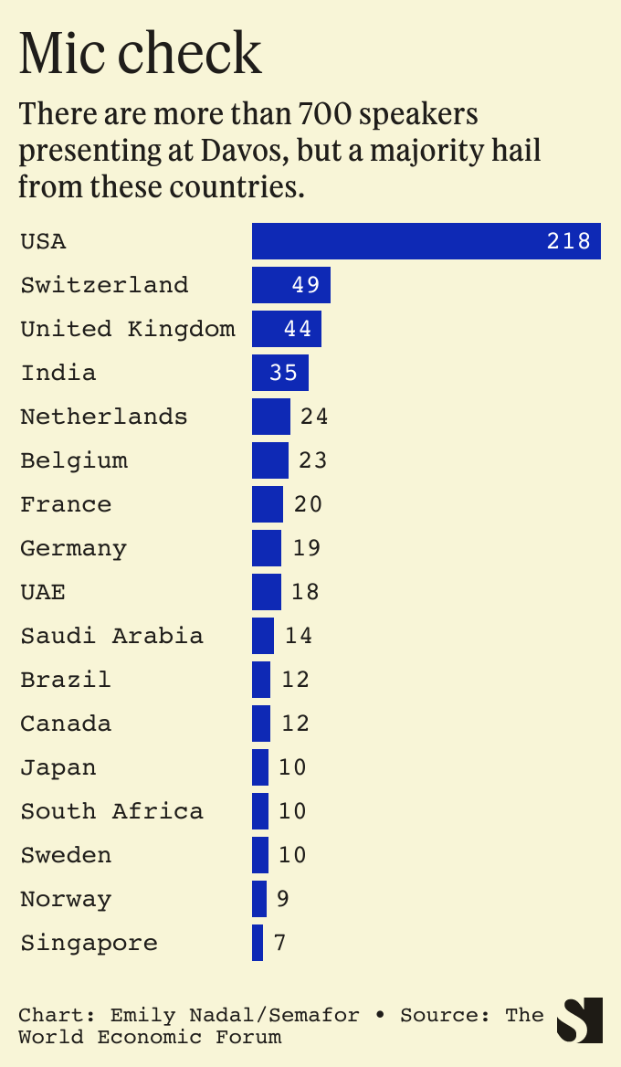 In The Newsletters: Politico’s Ryan Heath says the leading candidates to succeed Klaus Schwab include Christine Lagarde, Tony Blair, and Schwab’s children. And Quartz reports that Anthony Scaramucci visited the Blockchain hub, compared the fallen tycoon Sam Bankman-Fried to Judas, but otherwise seemed bullish on crypto (!). (Bankman-Fried is a Semafor investor.)