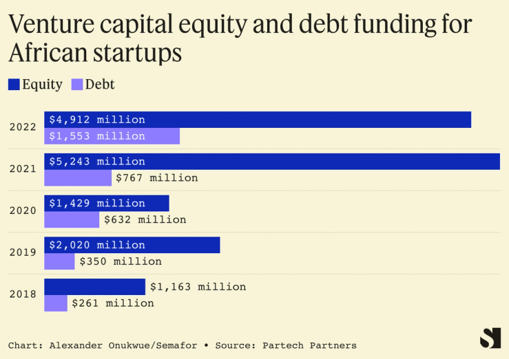 African startups have seen a big jump in venture funding through debt financing as opposed to traditional equity tools. Venture capital debt funding to African startups doubled to $1.5 billion across 71 deals in 2022, according to the latest funding report by Partech, a Paris-based startup investor.