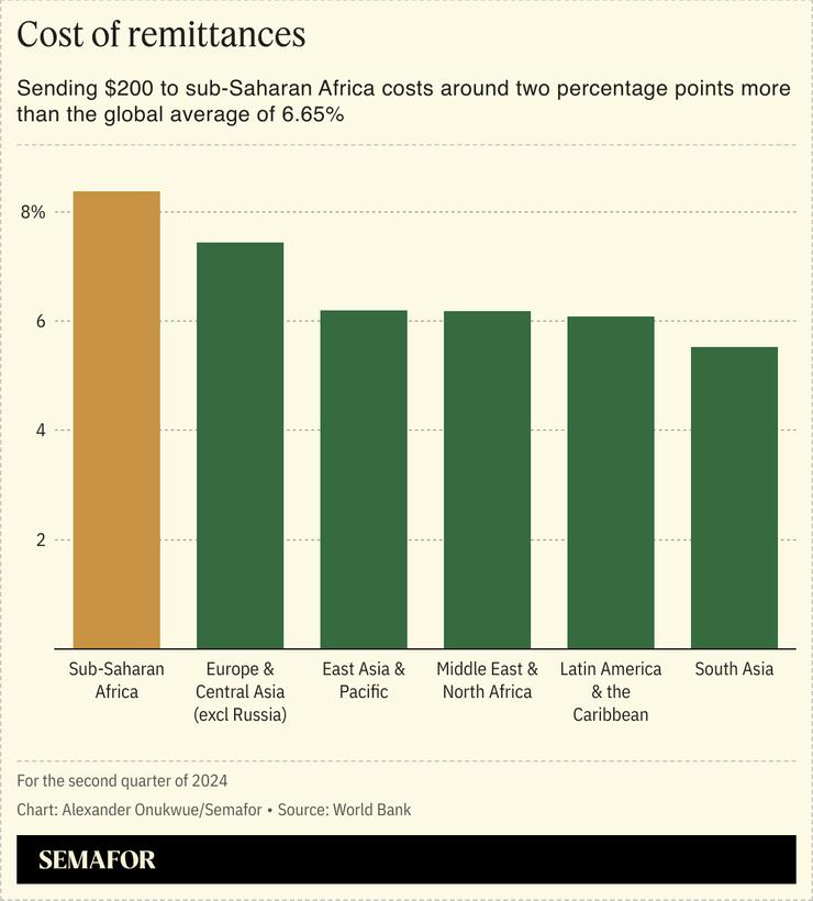 “Is it easy today to send money abroad? No, it’s terrible. You pay very high fees, it’s slow, and there’s a lot of inefficiency,” Seck told Semafor. While it is increasingly convenient to send money into Africa, “even there, the reality is that you still have forex fees” that make the service expensive, he said.