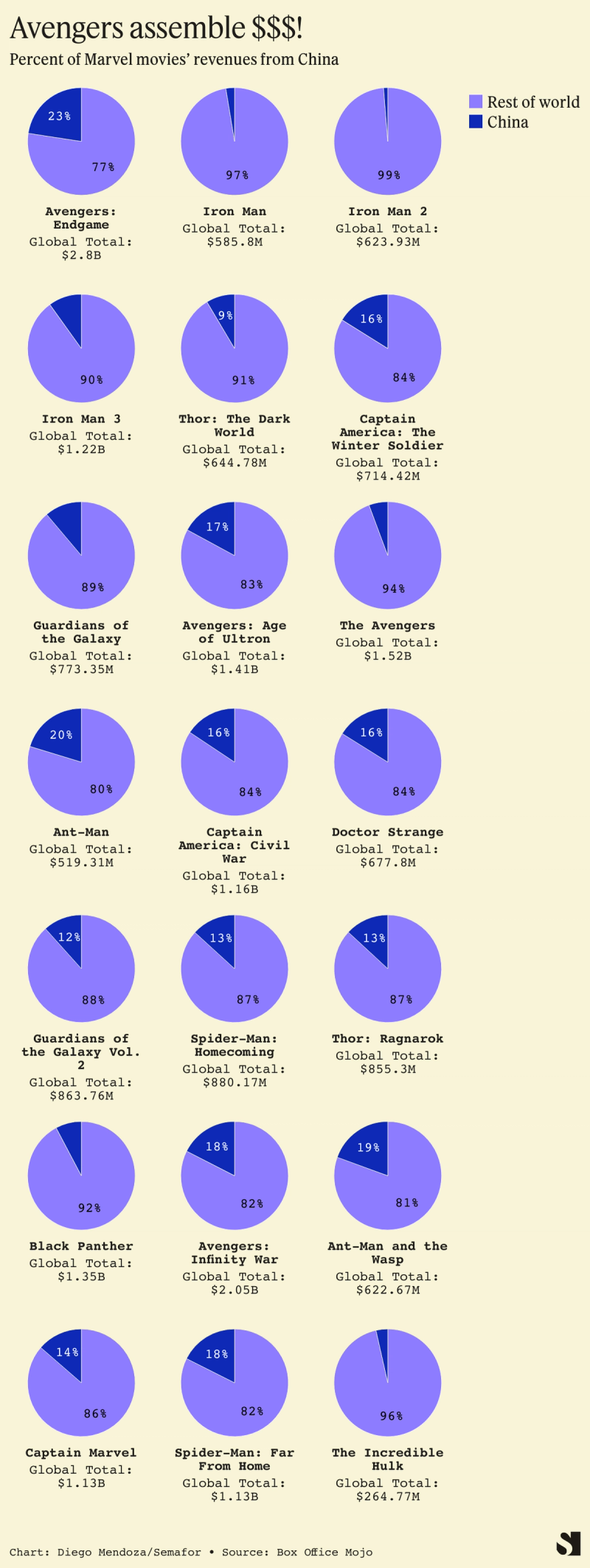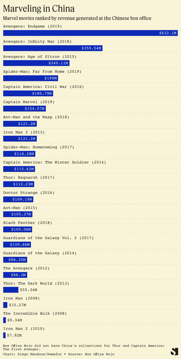 In recent years, China has frequently contributed more than 15% of worldwide sales for the Marvel franchise.