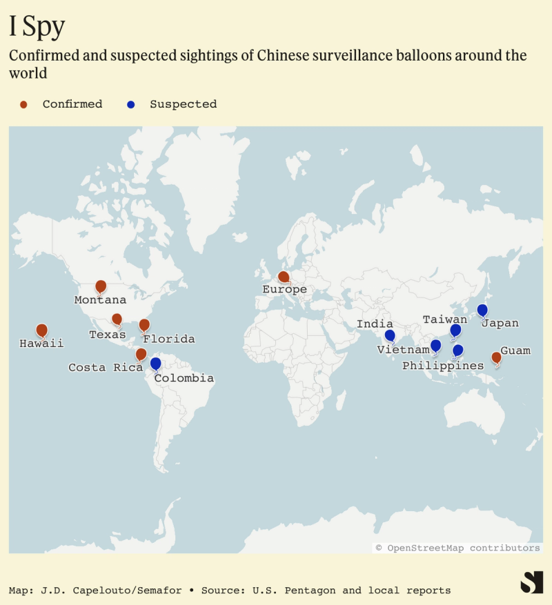 Here’s where other Chinese balloons sightings have been confirmed, and where they have been suspected, according to U.S. officials and local media reports.