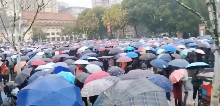 Videos from Wuhan city showed protesters confronting police –– singing The Internationale, a revolutionary workers’ anthem.
