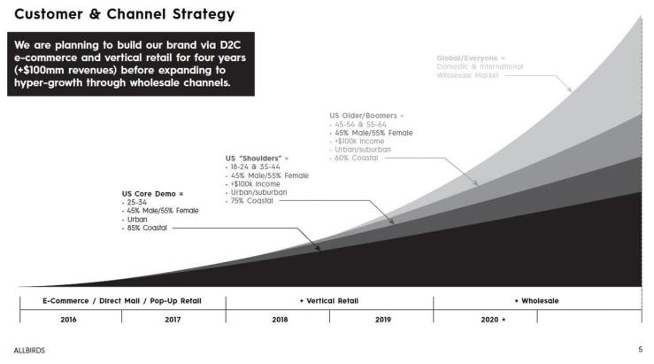 J: What I tried to share in that chart back in 2016 was that to reach a broader audience, we would need to have stores and wholesale partners… with +80% of shoes being bought in physical stores, there’s no way around it really.