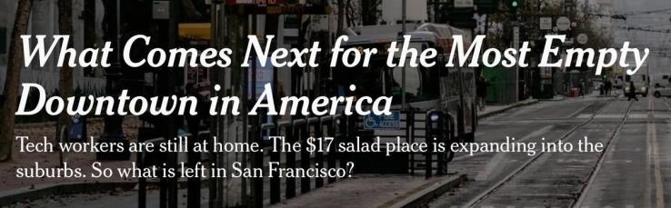 L: Here’s a headline from an NYT story today that paints a pretty bleak picture of downtown San Francisco, where you’re based. Is it that grim?