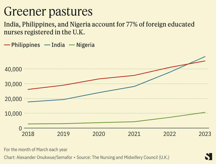 The possibility for migration can be an important incentive for local enrollments, “so taking away that option is going to make people less likely to want to train to be nurses in the first place,” he told Semafor Africa. He pointed to a study that found increased enrollment in the Philippines in response to increased demand in the U.S. and revised visa rules.