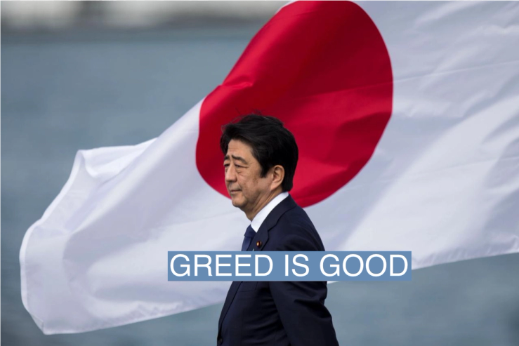 In 2013, then-Japanese Prime Minister Shinzo Abe took the podium at the New York Stock Exchange, the seat of global profit-seeking, and made a plaintive pitch. “Buy my Abenomics,” he begged, and invoked, naturally, Gordon Gekko. Japan’s stock market had featured in the 1987 classic Wall Street, but in the recently released remake, it was China that beckoned Shia LaBeouf. The speech presaged a series of reforms meant to make Japan not only economically competitive but financially vibrant, and to drag its clubby, conservative trading houses into the new Wall Street age. “Japan will once again be a country where there is money to be made,” he said.