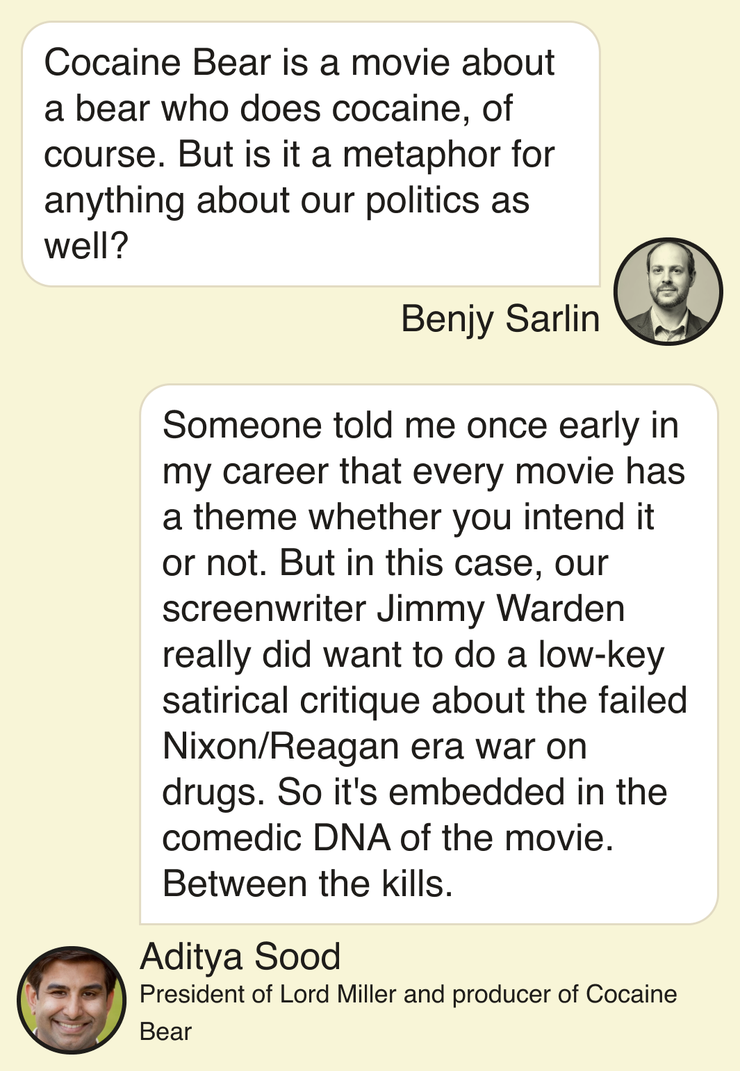 Aditya Sood is President of Lord Miller and producer of the movie Cocaine Bear. Other production credits include The Martian, Deadpool, and the Washington-set TV series Designated Survivor.