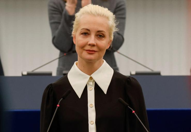 Yulia Navalnaya, the widow of Russian opposition leader Alexei Navalny, called on his supporters to protest against the Kremlin at elections next week by voting for anyone but President Vladimir Putin.
