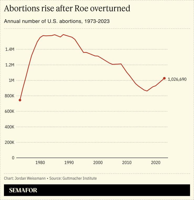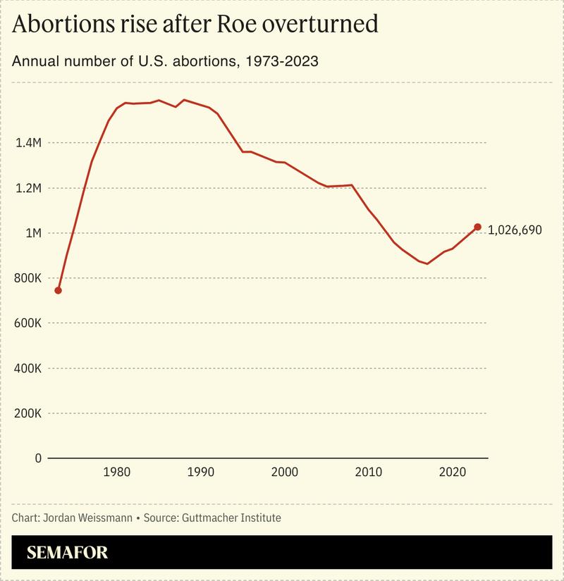 An estimated 1,026,690 Americans had an abortion last year, according to the Guttmacher Institute, a nonprofit focused on reproductive rights. That was 10% more than in 2020, the last year for which there is comprehensive data.