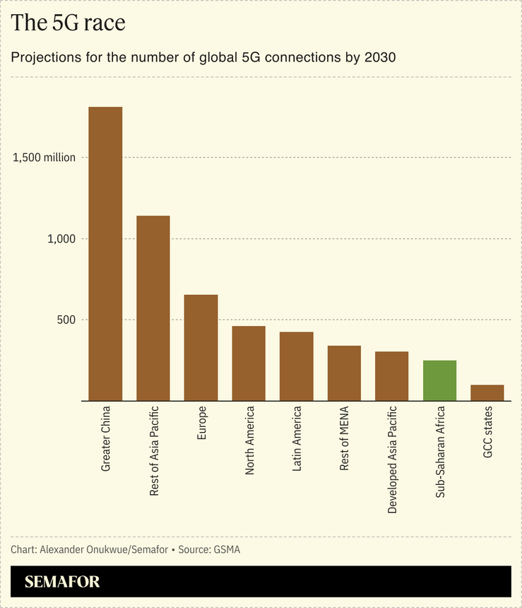 Angela Wamola, head of Africa at GSMA, said 5G technology is only used by 1% of Africans, with its use mainly restricted to businesses. She said the technology is likely to remain largely restricted to businesses in the next few years due to the high cost of handsets and 4G providing enough speed for most consumers. “It will be too expensive to roll out 5G knowing that the devices at the consumer level are not available for them to take advantage of those kinds of speeds,” she told Semafor.