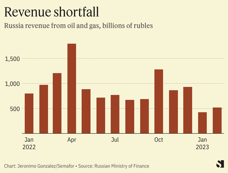 Part of Russia’s short-term success can be chalked up to revenue it accrued from the price of oil and gas after the war began. Earlier this year, a European price cap on Russia oil came into effect, meaning the country’s revenue has plummeted in the months following. The result is a growing deficit in Russia’s budget.