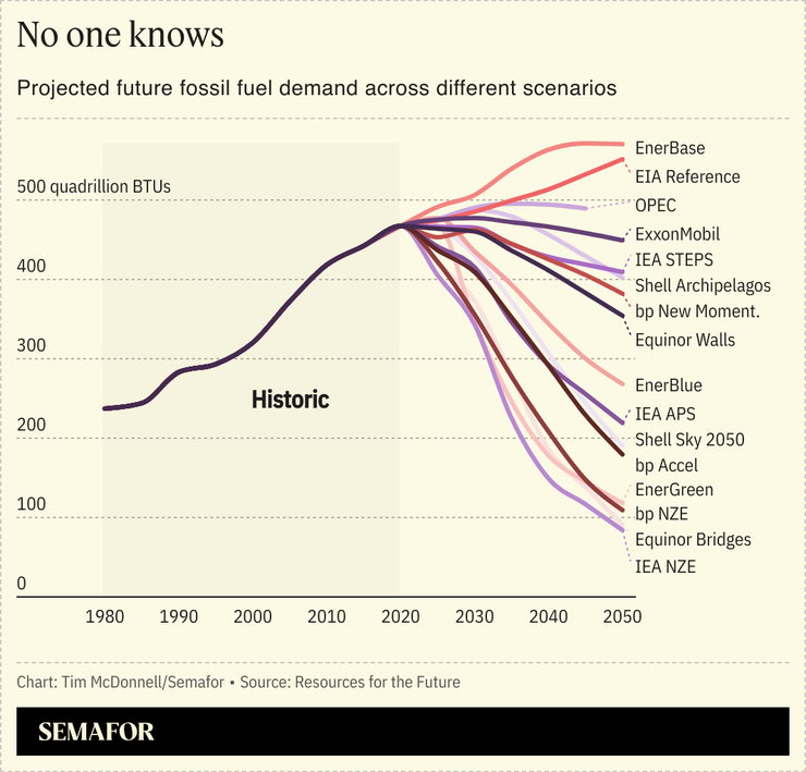 The future is still wide-open for global fossil fuel demand, according to a meta-analysis of 16 market outlooks compiled this week by think tank Resources for the Future.