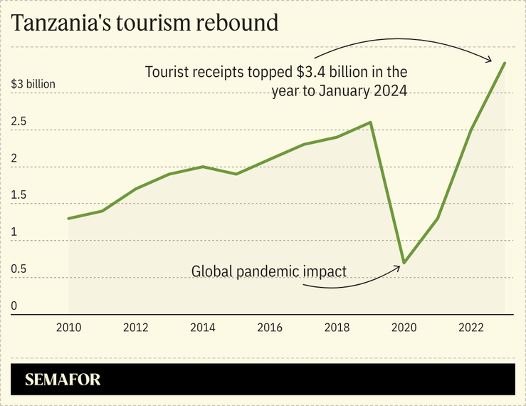 “I think Tanzania has been slow to deliberately grow numbers from China compared to other countries with comparable tourism industries in the region, so this is a positive move,” Brian Mwinyi, a Dar es Salaam-based travel consultant, told Semafor Africa. He cited South Africa and Kenya which grew Chinese tourist arrivals by 216% and 154% respectively in 2023, compared with the previous year.