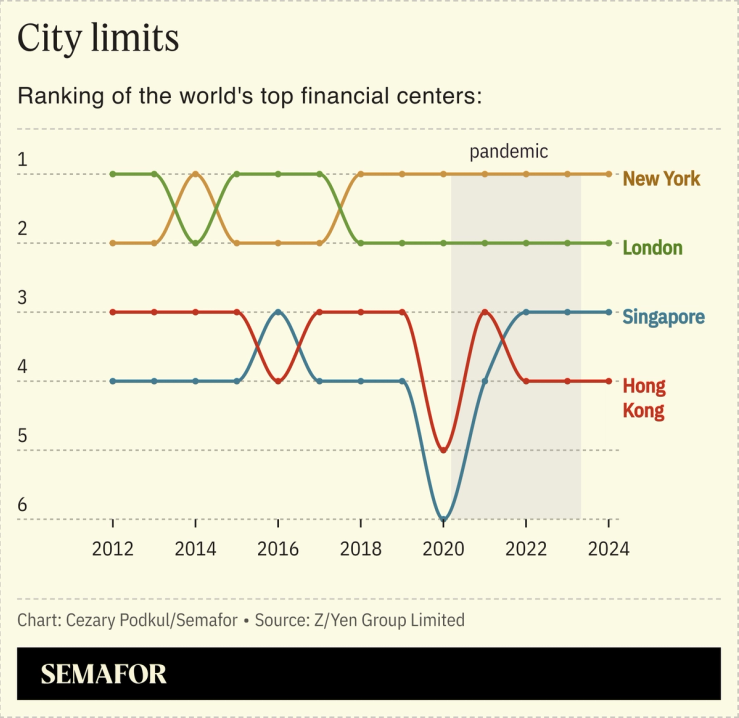 The benchmark Hang Seng Index was the worst-performing major stock market in the world last year and in January dipped under 15,000 — roughly where it was when the British handed Hong Kong over to China in 1997. (Chief Executive John Lee, speaking Monday at an HSBC conference, preferred to say the Hang Seng had “consolidated.“) The city’s stock exchange, once a crown jewel of Asia, slipped behind India’s in total market value last year.