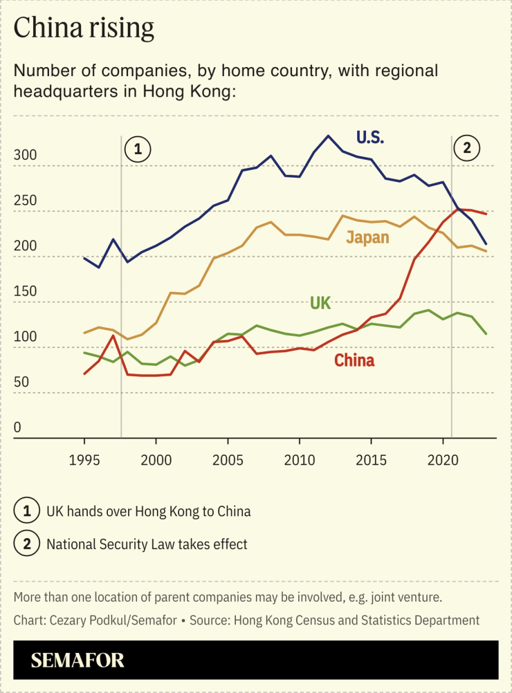 Draconian COVID-19 travel restrictions sent many expats to Singapore, where they’ve mostly stayed. In 2022, Singapore overtook Hong Kong in a closely-watched ranking of financial hubs. Companies including FedEx and Commerzbank have moved their regional headquarters out of Hong Kong. A new national security law implemented last month, which prescribes steep punishment for vaguely defined offenses, has further spooked foreigners.