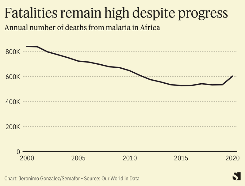Overall, malaria case and death rates have been shrinking due to medical interventions. The overall death rate from malaria dropped 40% between 2000 and 2015, according to the WHO. But both the death and incidence rate ticked up in 2020 because of disruptions from the COVID-19 pandemic.
