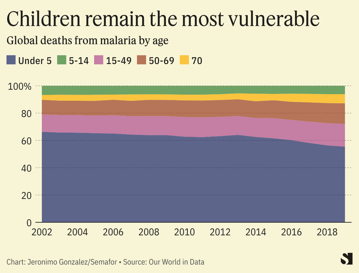 The death rate from malaria has been declining for children under the age of five for the past several years, but this age group still makes up the lion’s share of the disease’s fatalities. They comprised nearly 80% of all malaria deaths in 2021, according to UNICEF.