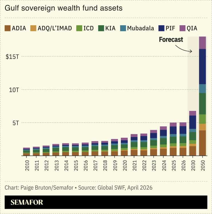 Gulf sovereign wealth funds maintained their pace of investments in the first quarter, despite nearly a third of the period taking place during the war, according to data by consultancy Global SWF first seen by Semafor, but the outlines of their strategy going forward is far murkier.