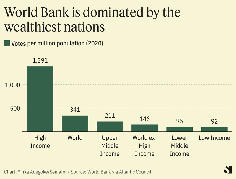 One of the more notable features of the current system, as the chart above shows, is how little influence is wielded by the countries that need the support the most. This is what Ofori Atta meant with his call for a “seat at the table.” Perhaps it’s unsurprising that wealthy countries who foot the bill make the significant decisions in how the system works. But, in an increasingly multipolar world with the rise of other financial partners including China, Turkey, and the Gulf nations among others, African governments who are trying to develop their countries will be less likely to accept the status quo.