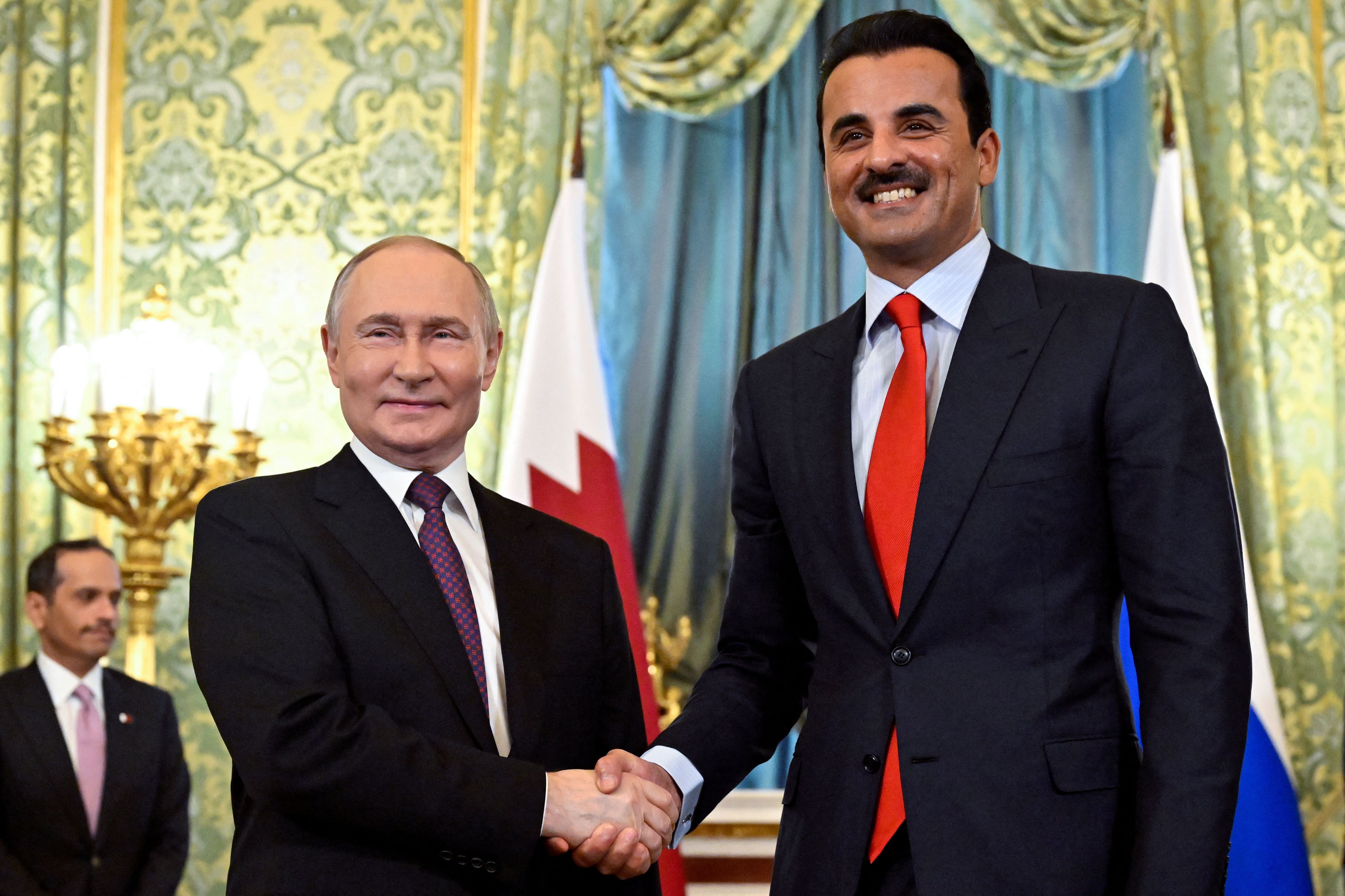 Discussions in Moscow focused on Gaza, future cooperation in Syria, and economic ties between Russia and Qatar. The meeting follows a visit by Syria’s president to Doha on Tuesday, which also included a previously undisclosed sit down with Iraq’s prime minister. A deal was also signed: The Russian Direct Investment Fund and Qatar Investment Authority agreed to start a joint $2 billion fund to invest in technology, minerals, and health care projects in Russia.