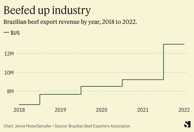 The largest importer of Brazilian beef in 2022 was China, which purchased a whopping $8 million worth of the meat, accounting for more than two-thirds of the country’s total exports. The U.S. is the second-largest importer, buying about 100,000 tons of beef from Brazil in 2022, according to AIBEC data.