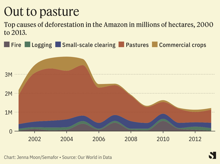 The revenue generated from Brazil’s beef exports comes at a huge cost: Pastures needed for cattle-grazing are a leading cause of deforestation in the Amazon rainforest.