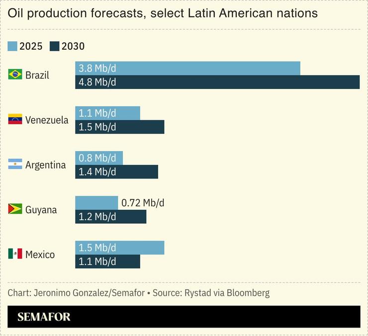 Latin America is forecast to make up around 50% of global oil production growth through 2030, according to Rystad Energy, lifting the prospects of crude exporters such as Argentina, Brazil, and Guyana.