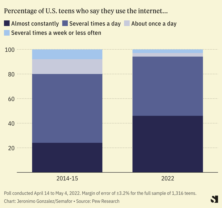 Social media is the means through which teens socialize: There’s no putting the toothpaste back in the tube. If we take away a 13-year-old’s phone, we’re cutting them off from their peers. As Foulkes told me, being ostracized is terrible for mental health — that’s not ambiguous or contested like the impact of phones is. Deliberately ostracizing children in the name of mental health does not sound a good idea.