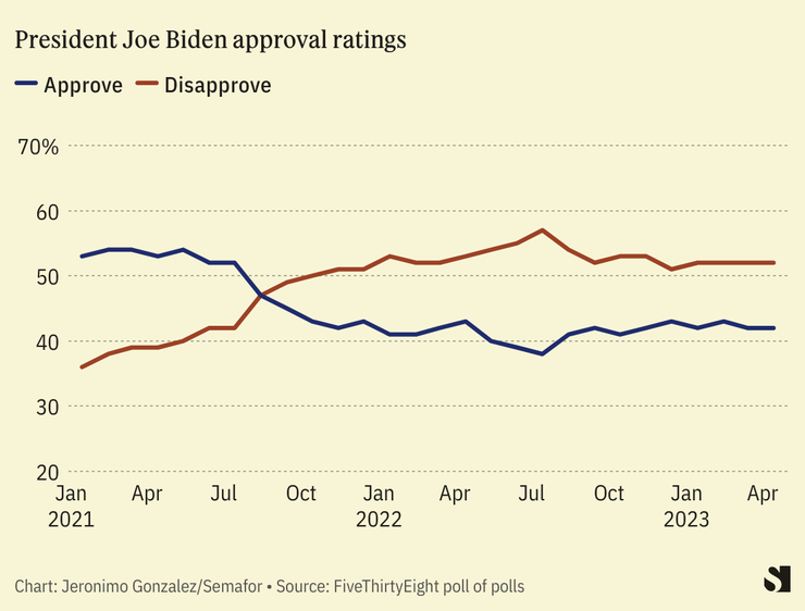 A poll conducted by CNN and SSRS in March found a 42% general approval rating for Biden amongst respondents. A majority of those polled — 67% — thought the president lacks the stamina and sharpness to serve another term.