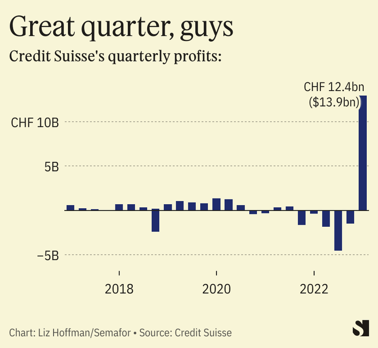 Credit Suisse posted its highest quarterly profit ever — very nearly the biggest haul by any bank in history — as it was dying.