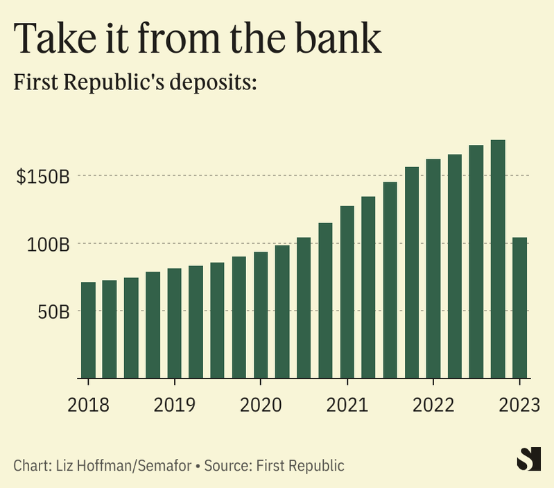 Investors got their first clear picture of that reality yesterday, when the bank reported first-quarter results. Customers yanked more than half of their deposits, about $100 billion in a matter of weeks. The bank borrowed $80 billion from the federal government to fill the gap. The resulting 19% drop in loan profits is a preview of what’s to come. The stock dropped nearly 30% Tuesday morning as shareholders absorbed the news.