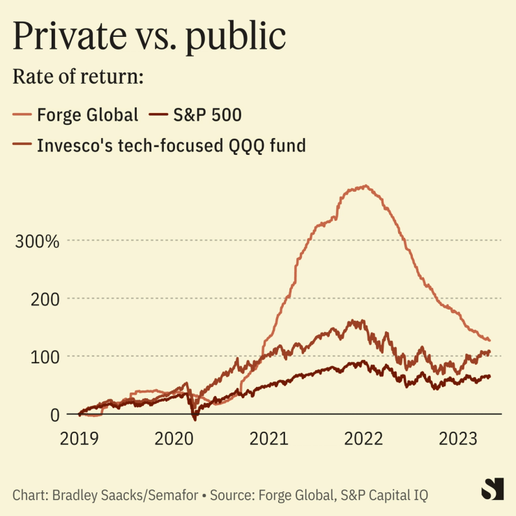 Forge’s index is somewhat protected from the worst private companies since traders on its platforms are mostly interested in the largest unicorns. But some of them have failed spectacularly over the years as they avoided the scrutiny of the public markets. Investing in this index means you could get pre-IPO exposure to the big winners — like Uber — and the big losers (another WeWork).