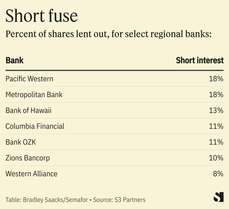 “You ban short selling when you think the market is missing something. The market isn’t missing anything here,” former SEC Chair Jay Clayton told me. Any ban would “have to be part of a comprehensive plan,” that involves getting more capital into ailing banks, and lifting or suspending the $250,000 cap on insured deposits, he said. “It’s at best a temporary bridge, and what are we bridging to?”