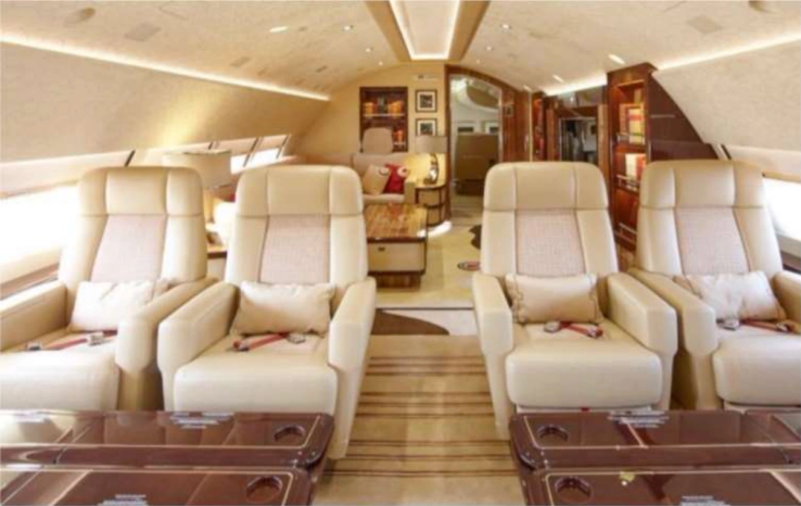 Though the listing for the plane on the site of the Swiss firm AMAC Aerospace is no longer online, a 16-page “aircraft specification summary” can still be found on its site. The document includes a detailed blueprint of the plane and a list of more than 100 interior parts and their manufacturers, as well as a glimpse at a vessel with many rooms — including an upper deck lounge, master bedroom, club seating area, and private office.