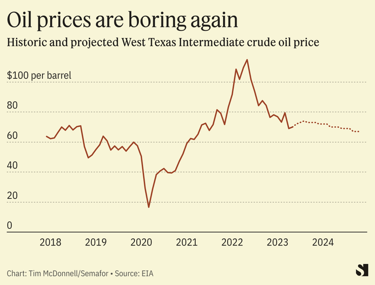 Lower fossil fuel prices are also an obstacle to the clean energy transition. They make renewables less competitive in the electricity market, and EVs less competitive in the car market. Inflation and rising interest rates are especially problematic for solar and wind energy companies, which have high upfront costs and rely on a steady, affordable supply of steel, critical minerals, and other commodities. Lower profits for oil and gas companies could also sap their willingness to increase spending in their low-carbon divisions.