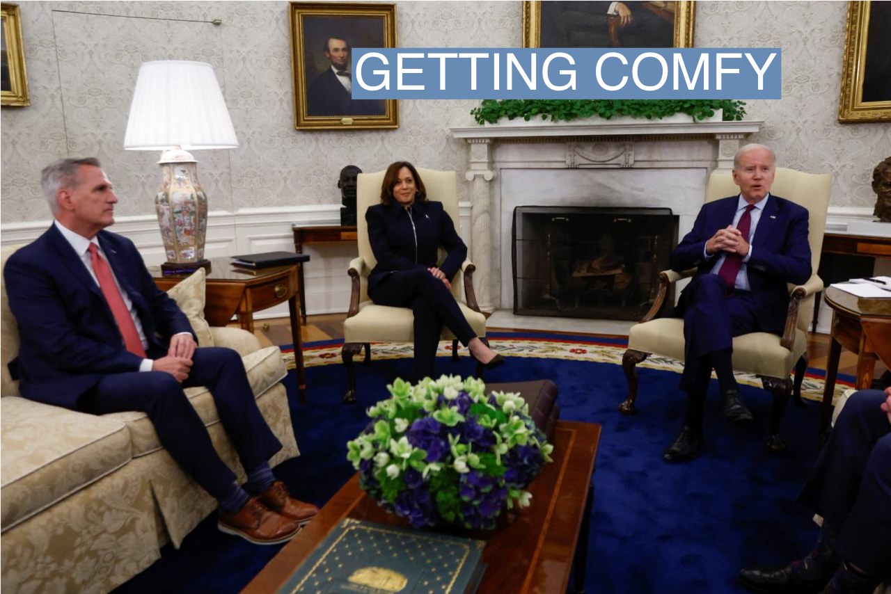 - Politico talks to Democratic Senators who are skeptical McCarthy and Biden can reach a deal before the default deadline. “Kevin’s in shackles. He’s in leg, arms and hand cuffs. And frankly I don’t think he’s got much capacity to negotiate. And very little capacity to advance a deal,” said Vermont Sen. Peter Welch.
