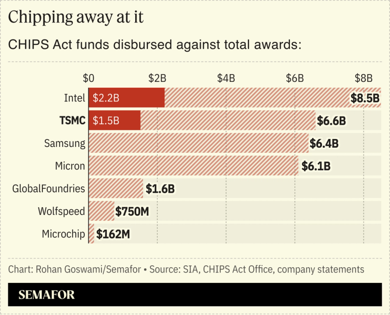 “Secretary Lutnick has been focused on delivering President Trump’s directive to reshore manufacturing back to the United States,” a Commerce spokesperson said. “The administration’s close collaboration with industry leaders has already secured trillions in investment commitments to Make in America, including a $165 billion investment from TSMC.”