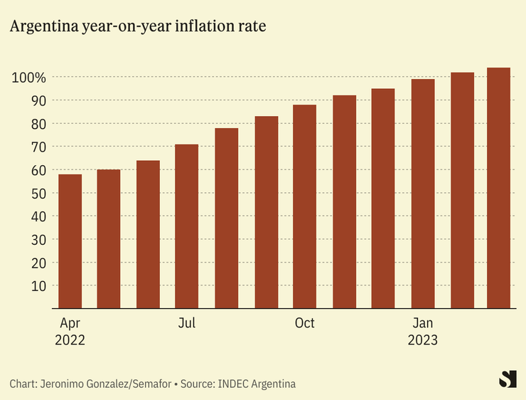 Argentina’s inflation rate is one of the highest in the world, sitting at 109% in April. But the rate is expected to climb even higher, and is projected to hit 150% over the next 12 months.