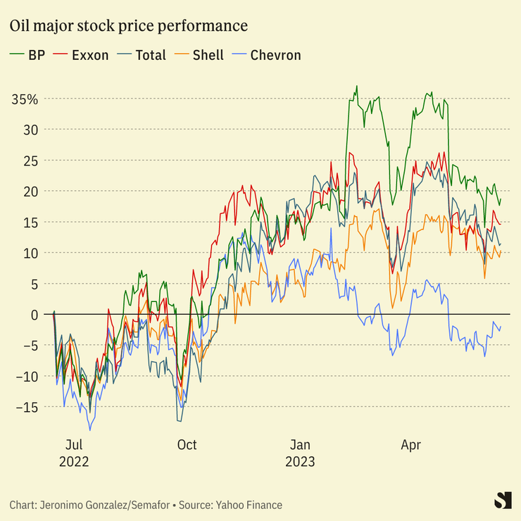 Investors have so far not punished oil and gas companies for failing to shift into renewables. Quite the contrary: European fossil fuel giants argue their share prices are undervalued compared to their American peers because of an outsized (if still minimal) focus on cleaner sources of energy. And at annual shareholder meetings last month, the vast majority of shareholder proposals urging ExxonMobil and Chevron to better report and cut their carbon emissions were overwhelmingly rejected.