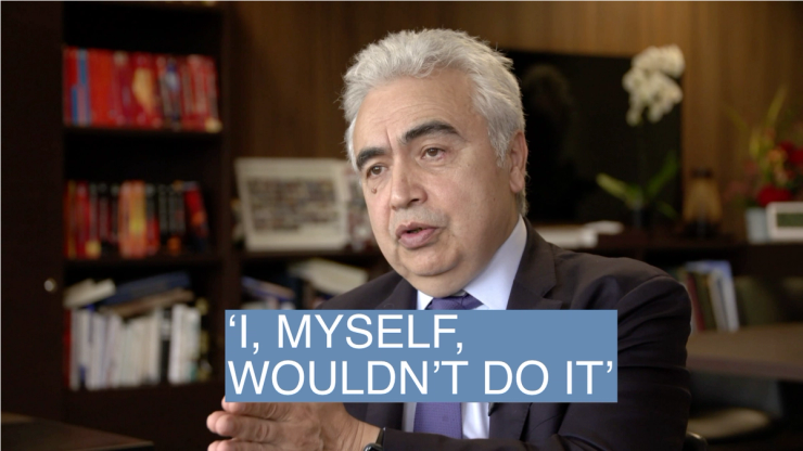 “I, myself, wouldn’t do it,” Fatih Birol said of whether he would invest his own personal pension in fossil fuel firms.
