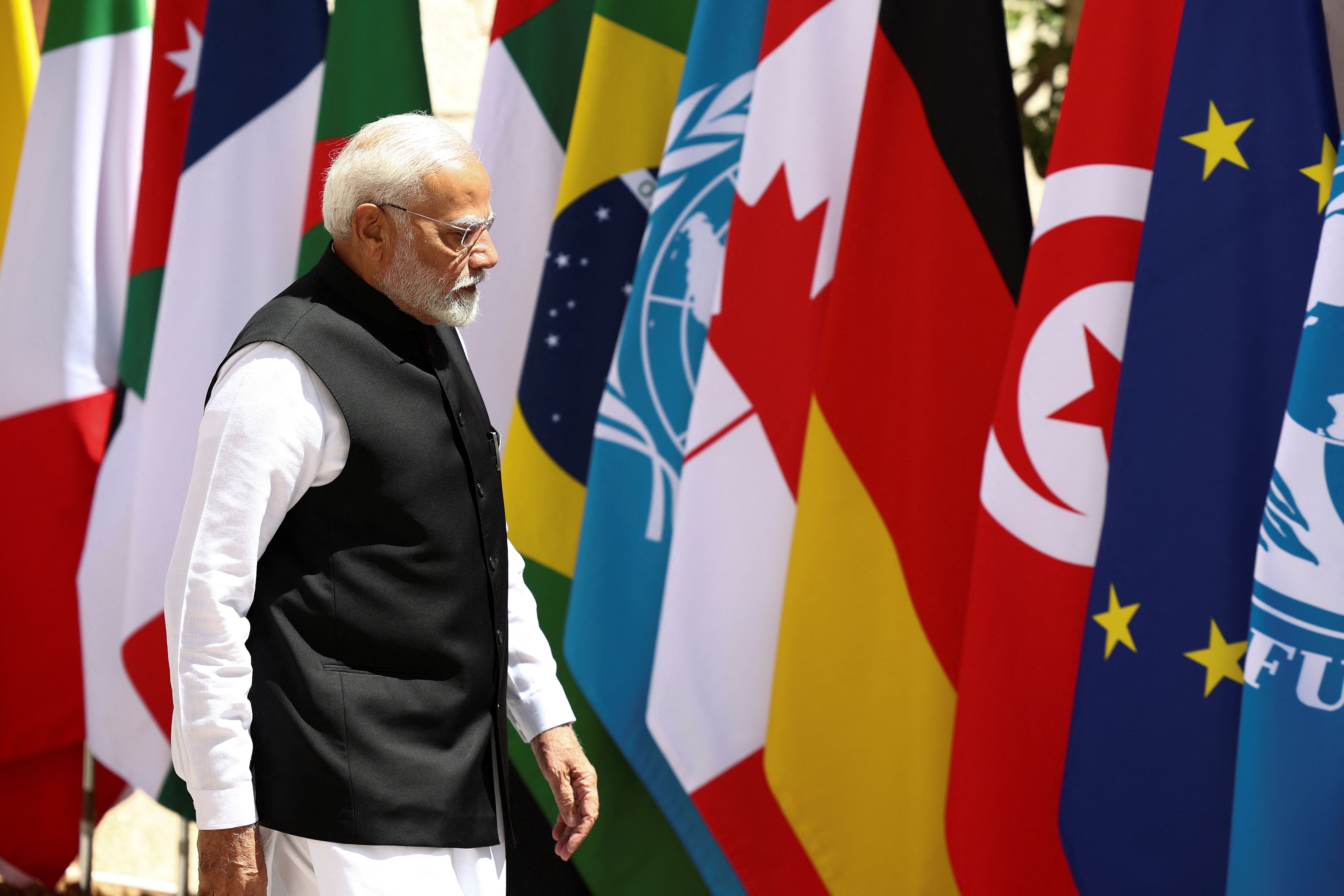 Indian Prime Minister Narendra Modi arrived in Italy for the G7 summit Friday, his first international trip after an unexpectedly underwhelming performance in India’s recent elections saw his Hindu nationalist Bharatiya Janata Party fall short of an outright majority.