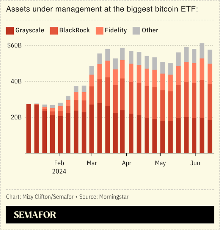 Six months after bitcoin ETFs got approved, where are we? After an initial rush, total assets haven’t grown meaningfully.